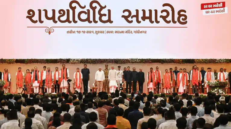 गुजरात के राज्यपाल आचार्य देवव्रत ने सभी नए मंत्रियों और कैबिनेट मंत्री या स्वतंत्र प्रभार वाले मंत्रियों को पद एवं गोपनीयता की शपथ दिलाई।